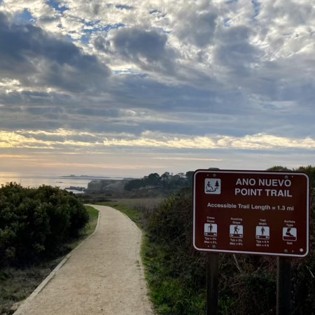 Park at the Wilder Ranch State Park Day Use Parking. Parking fee $10. Restrooms available. Click on map symbol for map and written directions.