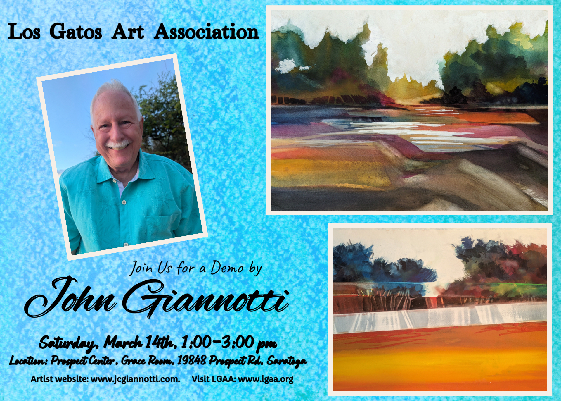 Now in our 76th year, LGAA is a 501(c)3 non-profit organization established in 1948 and dedicated to the education, enrichment, and support of the fine arts community. We feature demos by professional artists, competitions, exhibitions, members' online galleries, critiques, an active Plein Air group that meets weekly, peer reviews and more...